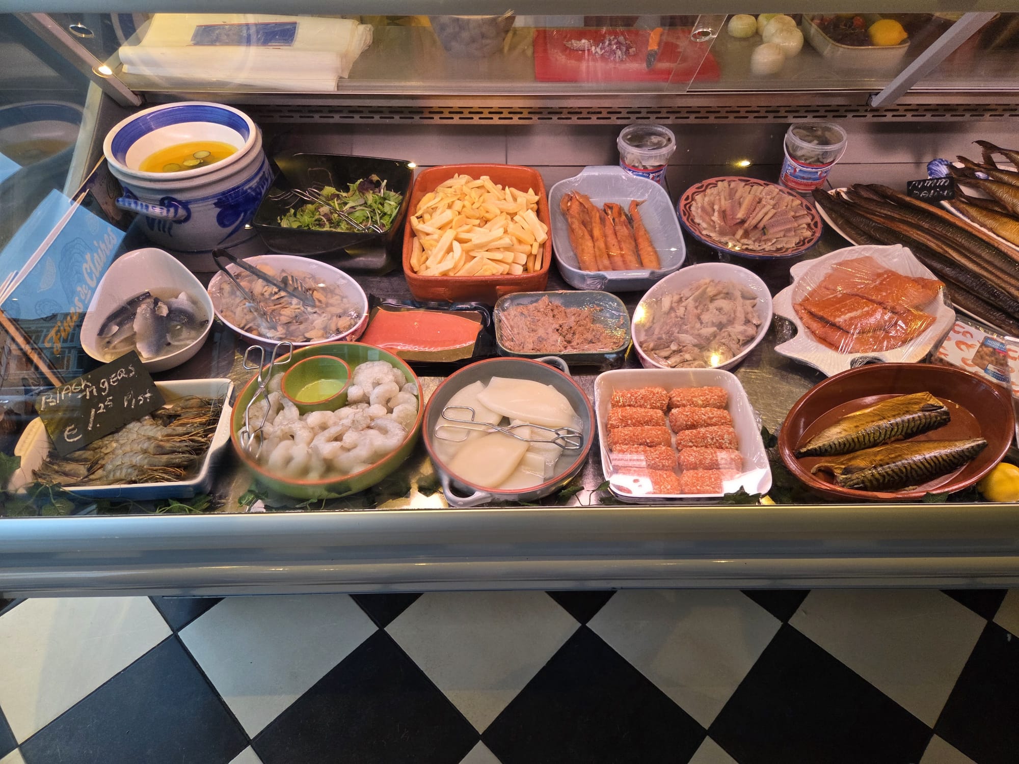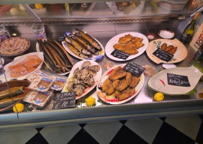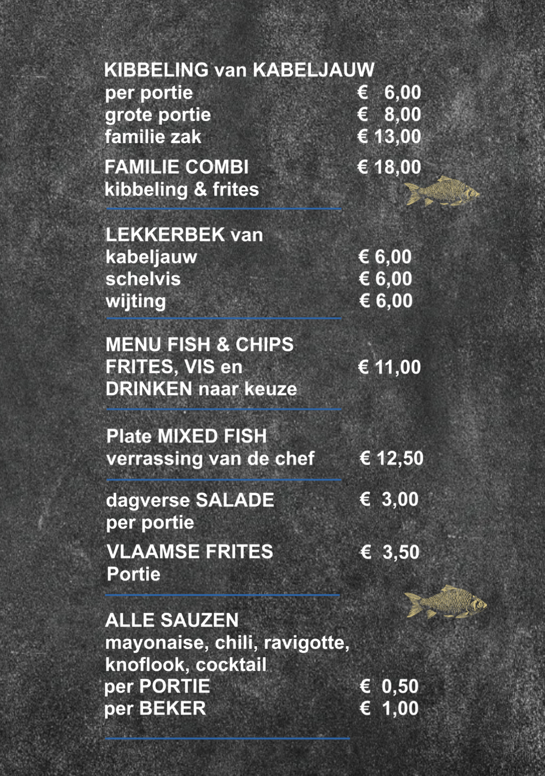 Dis: een gedekte tafel met eten. In onze winkel betekent dat gezellige tafeltjes met heerlijke verse vis op mooi opgemaakte borden. Mensen die weten wat ze doen! Uw servetten en placemats zijn gemaakt van gerecycelde materialen, bij ons geen plastic!